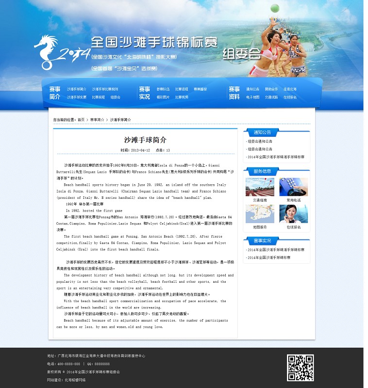2014年全國沙灘手球錦標(biāo)賽組委會(huì)網(wǎng)站