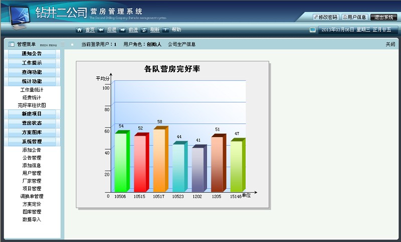 鉆井二公司營房管理有著營房數(shù)量眾多、存放地理位置分散、工作流程繁多的特點,通過該營房管理系統(tǒng)可以對營房進(jìn)行高效管理。