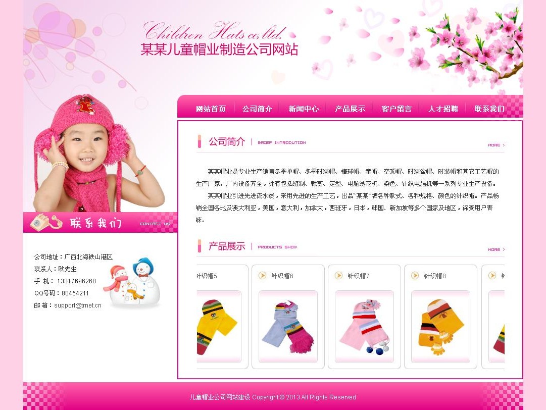 某某帽業(yè)引進(jìn)先進(jìn)流水線,采用先進(jìn)的生產(chǎn)工藝,出品“某某”牌各種款式、各種規(guī)格、顏色的針織帽。產(chǎn)品暢銷全國(guó)各地及澳大利亞,美國(guó),意大利,加拿 大,西班牙,日本,韓國(guó)、新加坡等多個(gè)國(guó)家及地區(qū),深受用戶青睞。